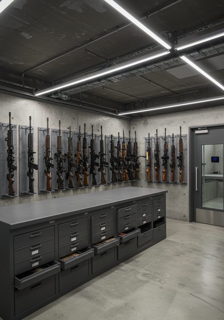 Com ampla experiência em sistemas de armazenamento e soluções para instituições públicas e privadas, a Escritec executa projetos que garantem segurança, controle e organização na guarda de armamentos e munições. Nossas soluções são personalizadas para atender às necessidades de cada operação, com estruturas reforçadas, tecnologia de segurança e acabamento de alto padrão. Tudo seguindo rigorosamente as normas vigentes e os critérios técnicos exigidos pelo setor.